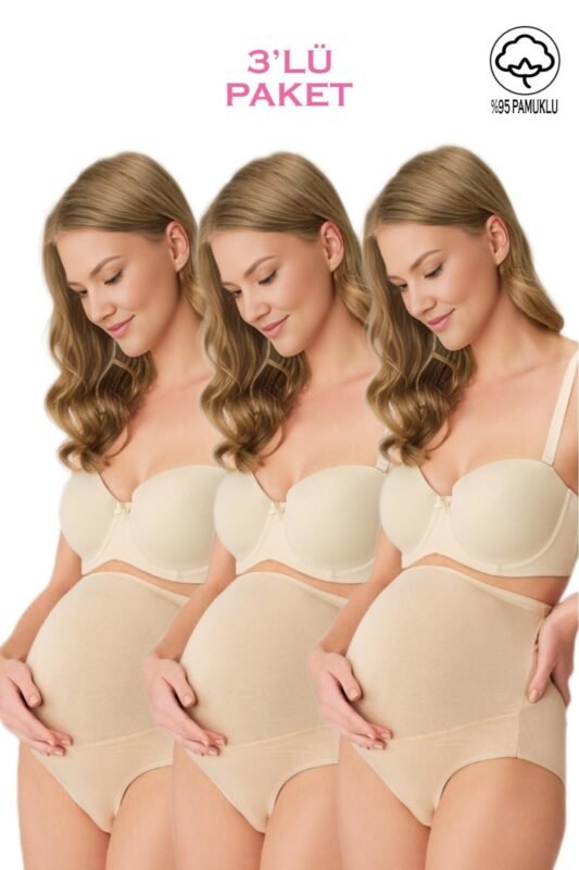 Lirona 3’lü Pamuklu Hamile Lohusa Kadın Külot – Ten