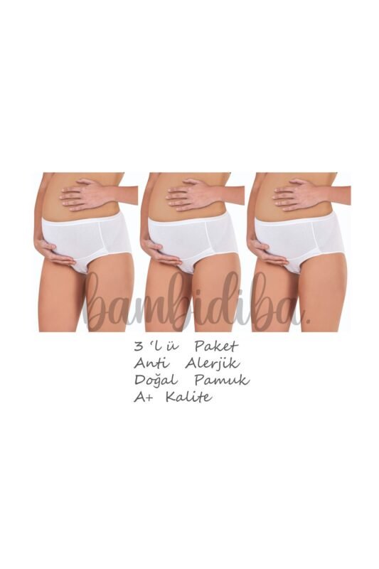 Lirona 3’lü Pamuklu Hamile Lohusa Kadın Külot – Beyaz