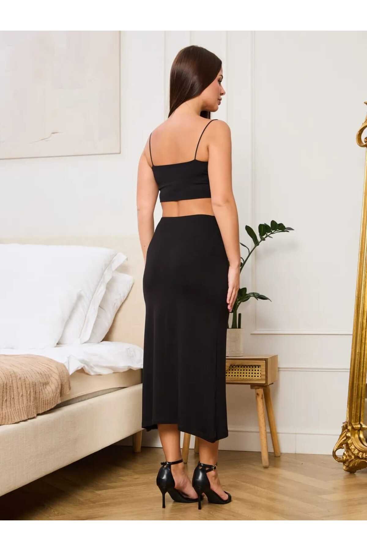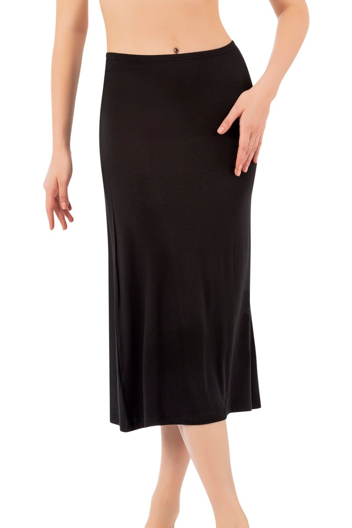 Lirona Kadın Viskon Diz Altı Uzun Etek Astar Jüpon Kombinezon – Siyah