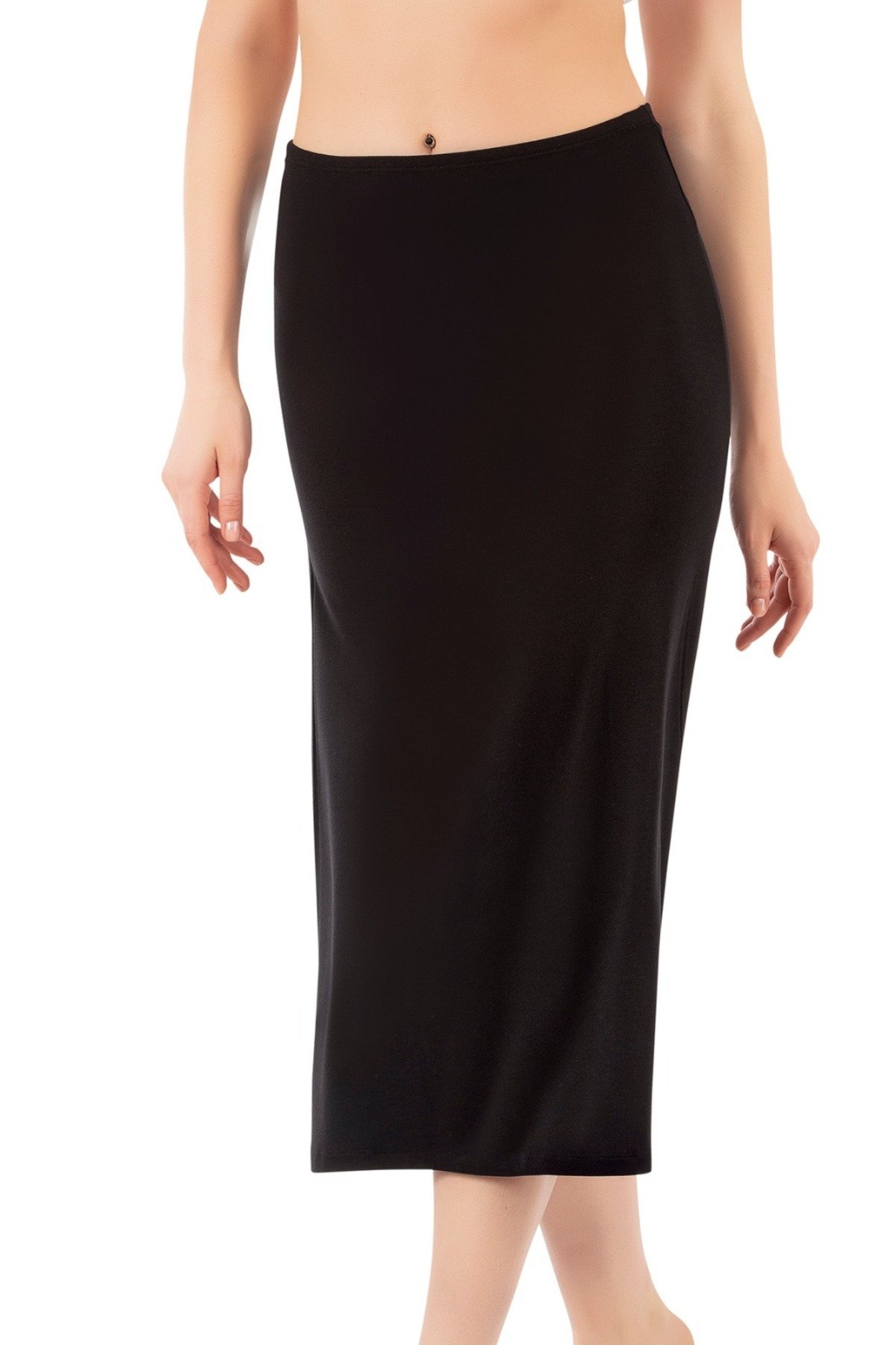 Kadın Viskon Diz Altı Uzun Etek Astar Jüpon Kombinezon – Siyah