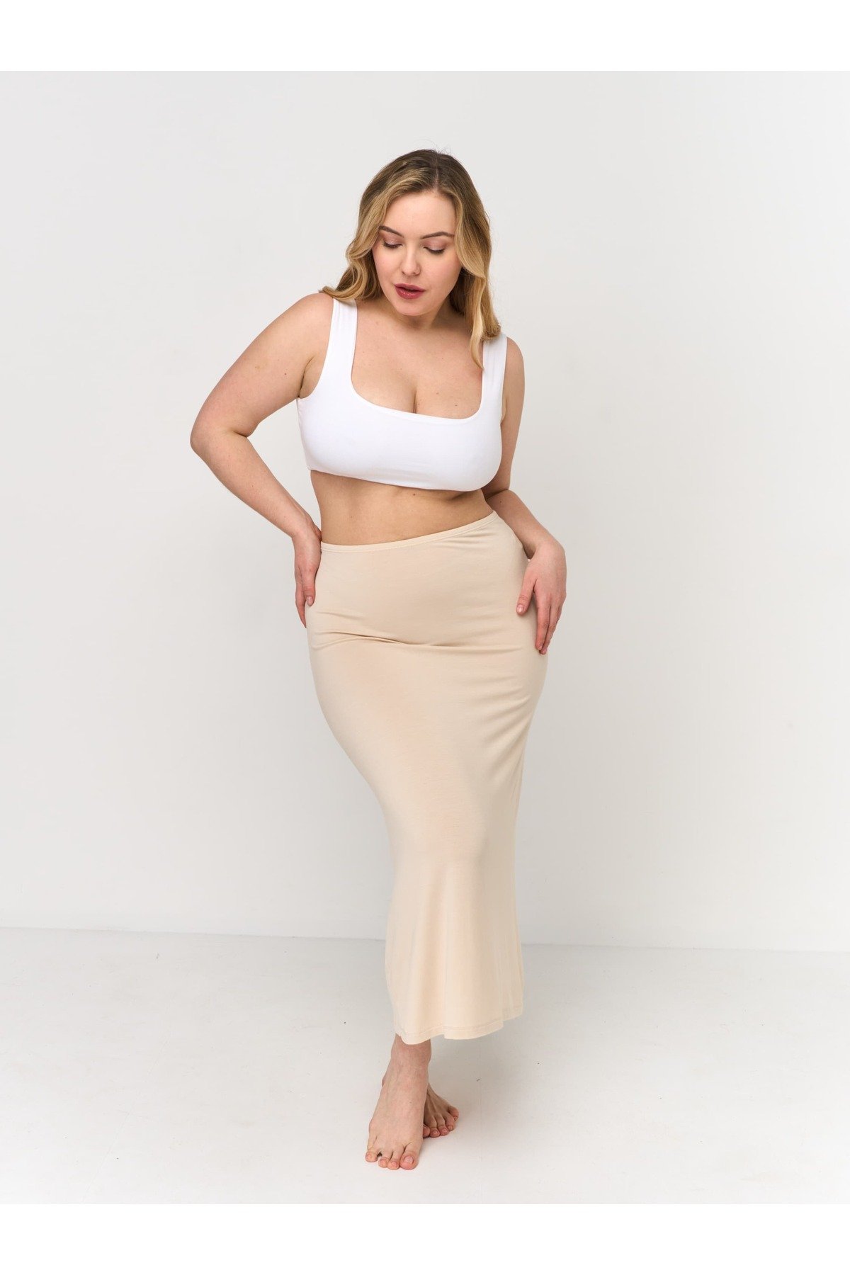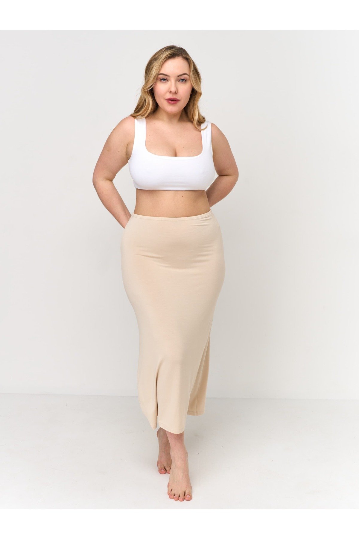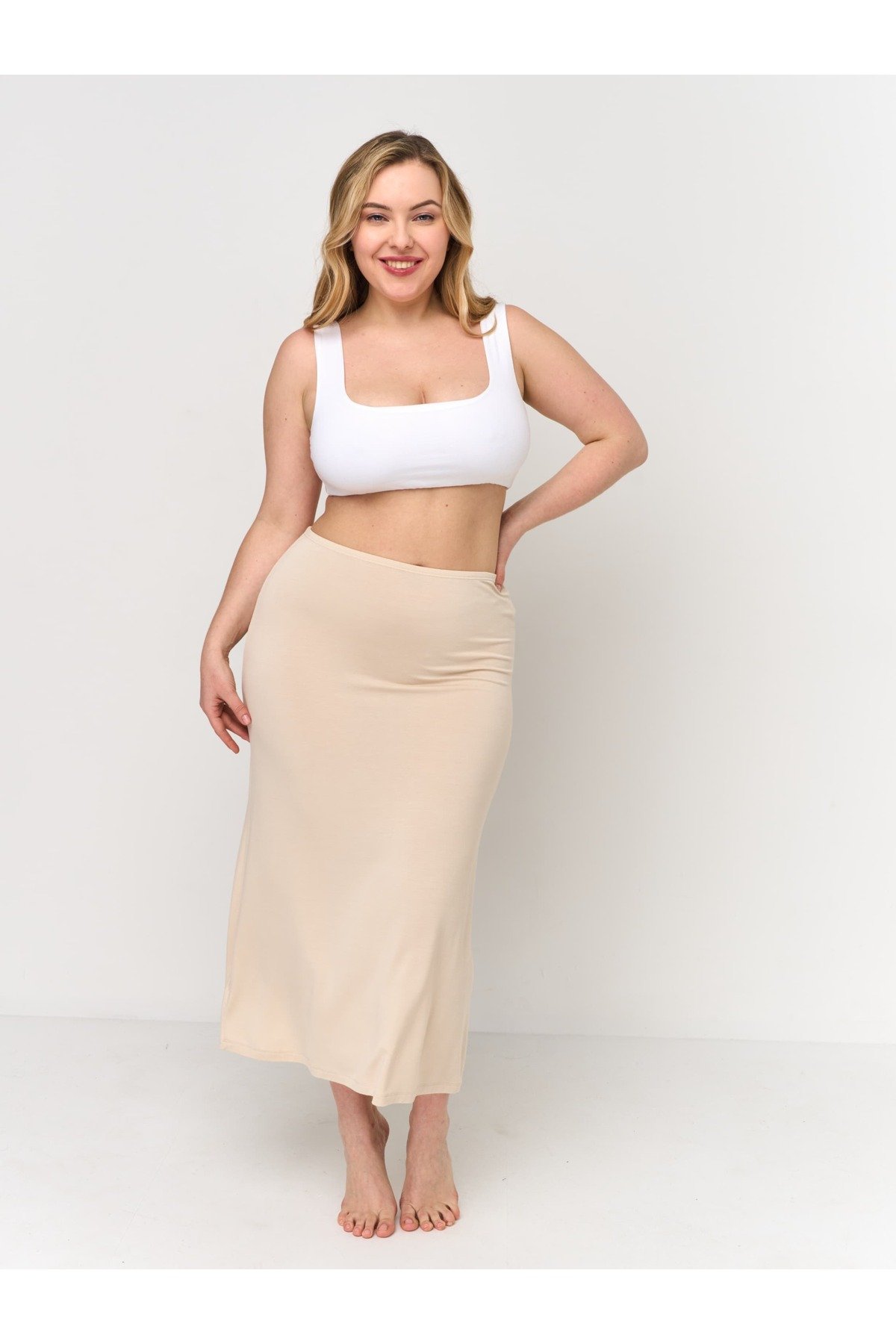 Lirona Viskon Diz Altı Uzun Etek Astar Jupon Kombinezon – Bej