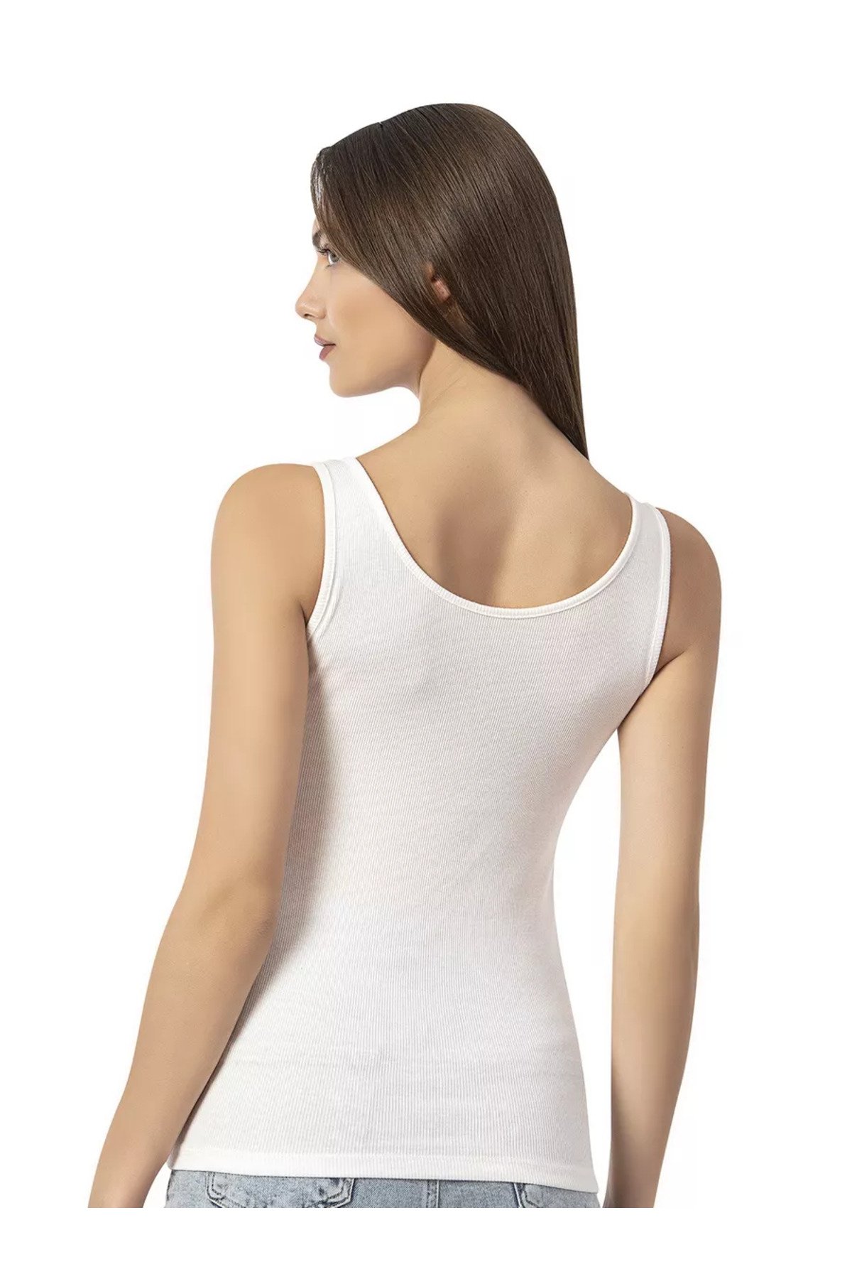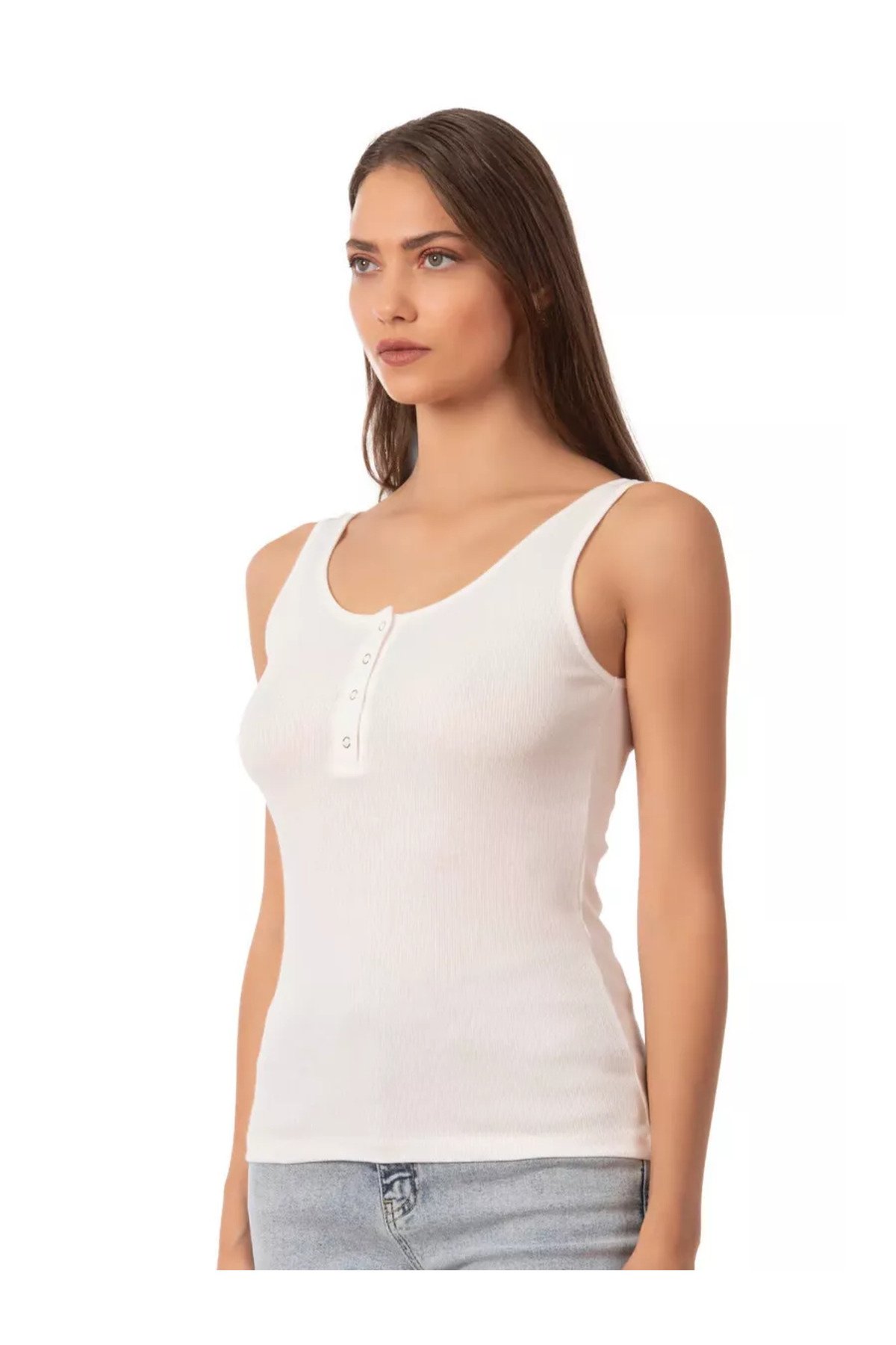 Lirona Kadın Pamuk Kaşkorse Fitilli Önü Patlı Kalın Askılı Örme Atlet Crop – Ekru – Kırık Beyaz