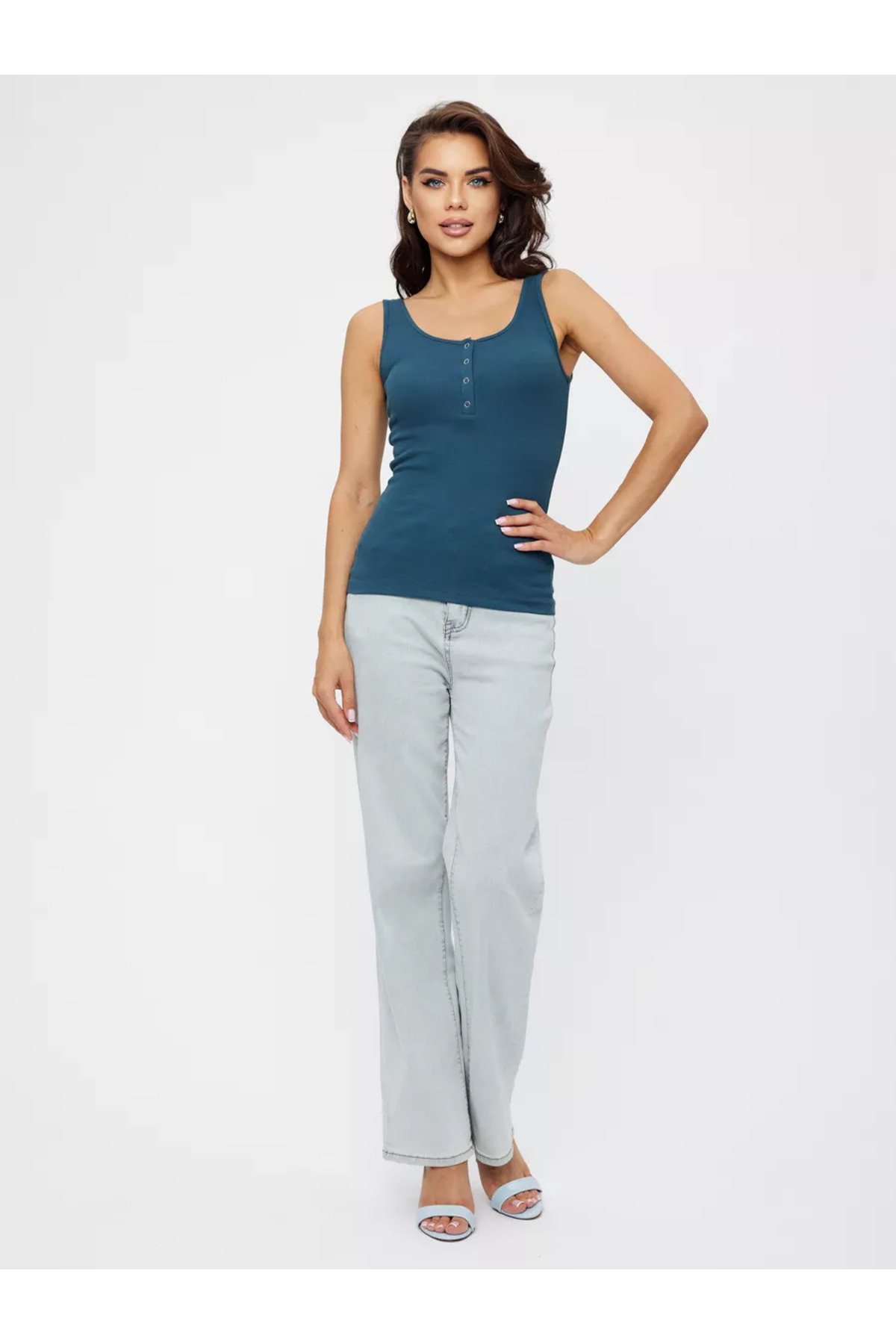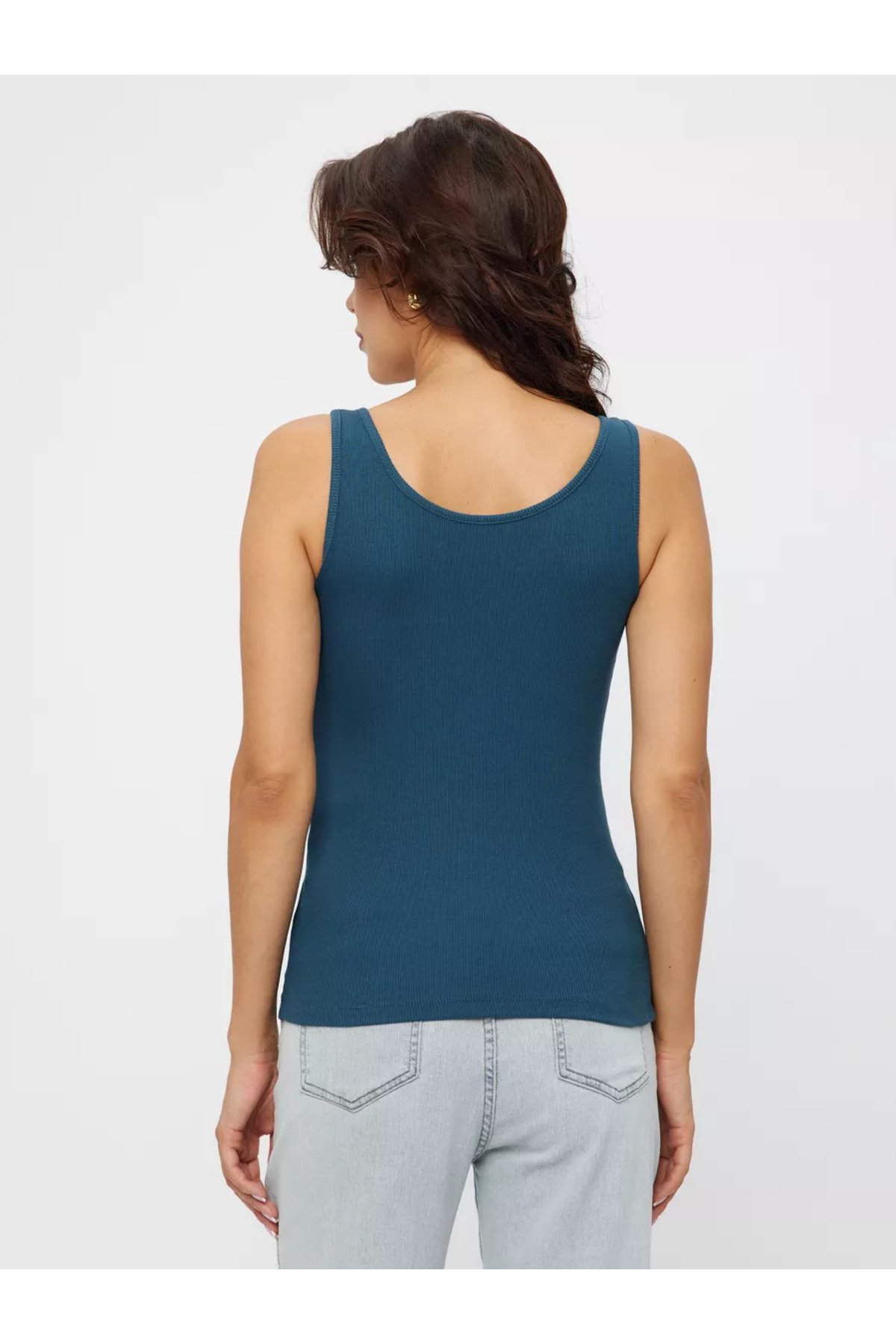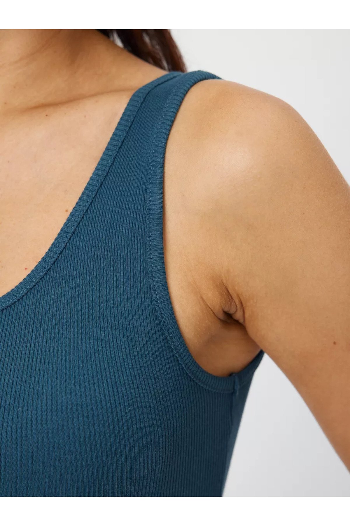 Lirona Kadın Pamuk Kaşkorse Fitilli Önü Patlı Kalın Askılı Örme Atlet Crop – Petrol Yeşil