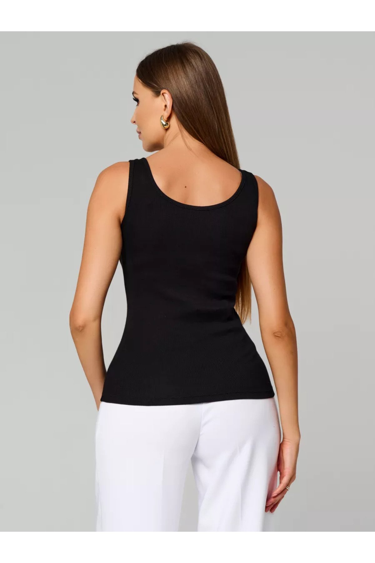Lirona Kadın Pamuk Kaşkorse Fitilli Önü Patlı Kalın Askılı Örme Atlet Crop – Siyah