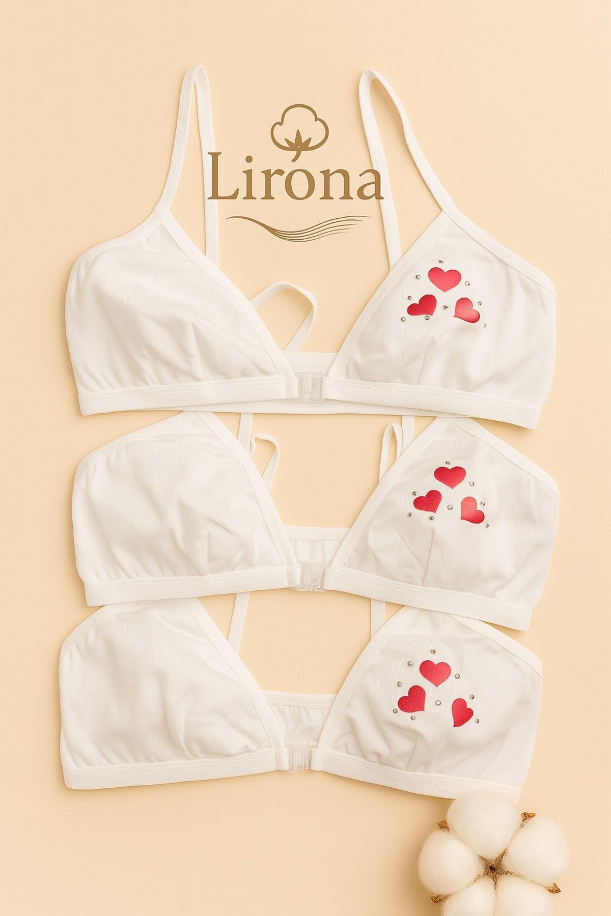 Lirona 3’Lü Paket Kız Çocuk Taşlı Pamuk Alıştırma Sütyen Büstiyer Taşlı – Beyaz