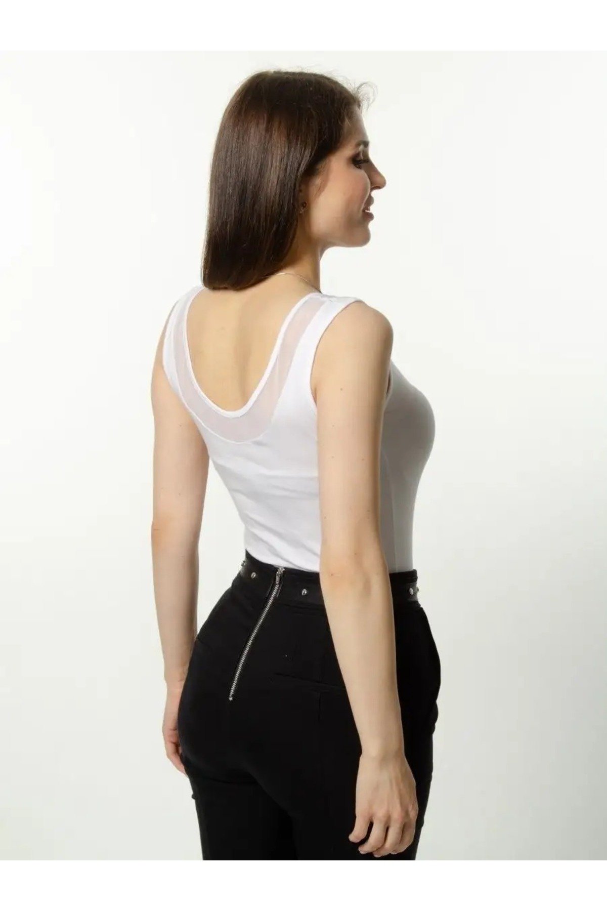Lirona Penye Pamuk Tül Detaylı Havuz Yaka Atlet & Body – Beyaz