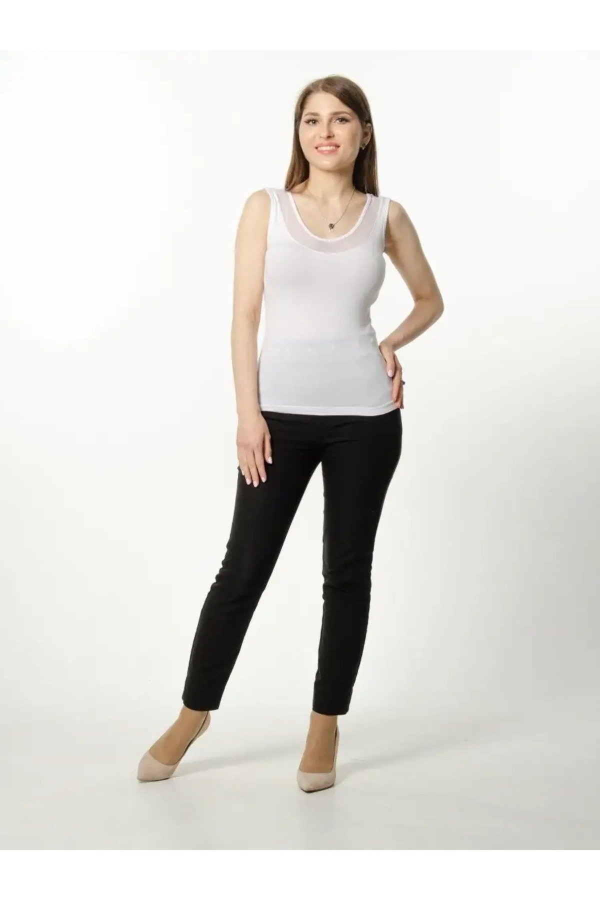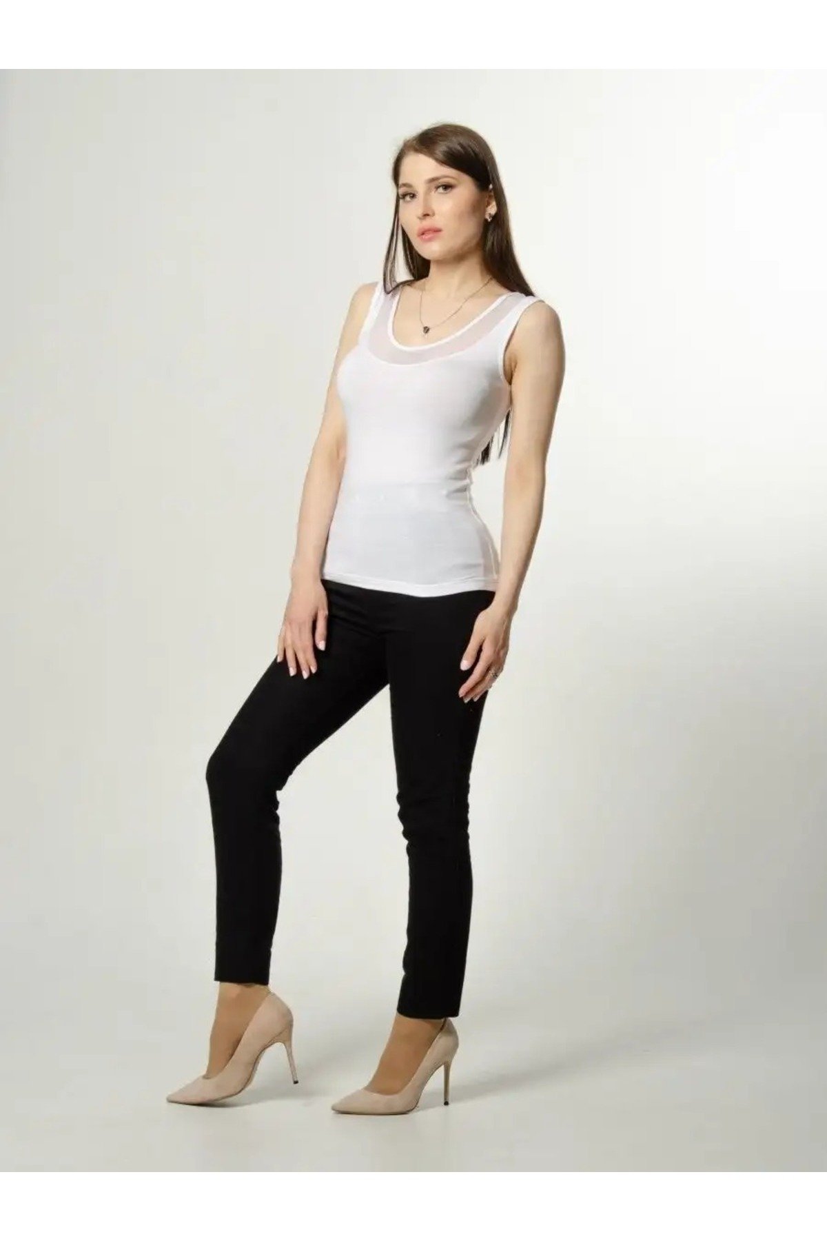 Penye Pamuk Tül Detaylı Havuz Yaka Atlet & Body Ceket İçi Günlük Casual – Beyaz