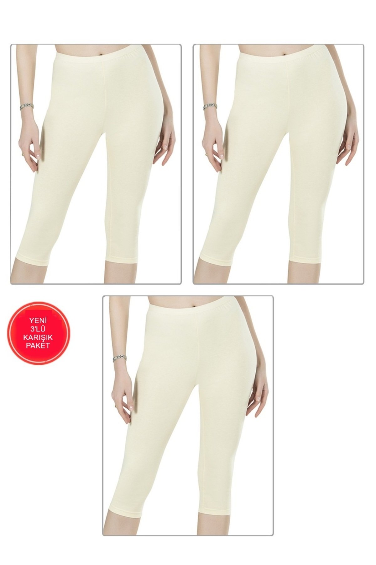 Lirona Pamuk Diz Altı Pantolon Ve Etek İçi Astar Şort Tayt - 3'lü paket Karışık
