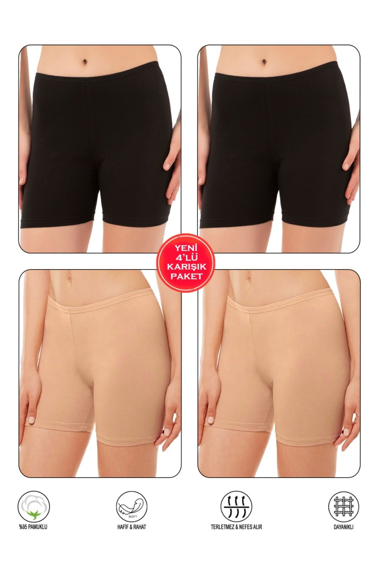 Pamuk Diz Üstü Mini Pantolon Etek İçi Astar Şort Tayt 4’lü Karışık – Diz üstü şort tayt modelleri Lirona’da. Uygun fiyat, hızlı kargo.