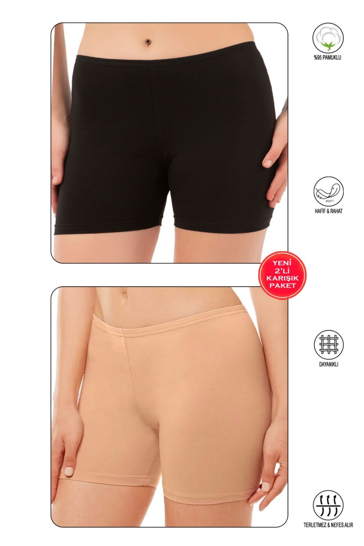 Pamuk Diz Üstü Mini Pantolon Etek İçi Astar Şort Tayt – Siyah-ten 2’li Paket