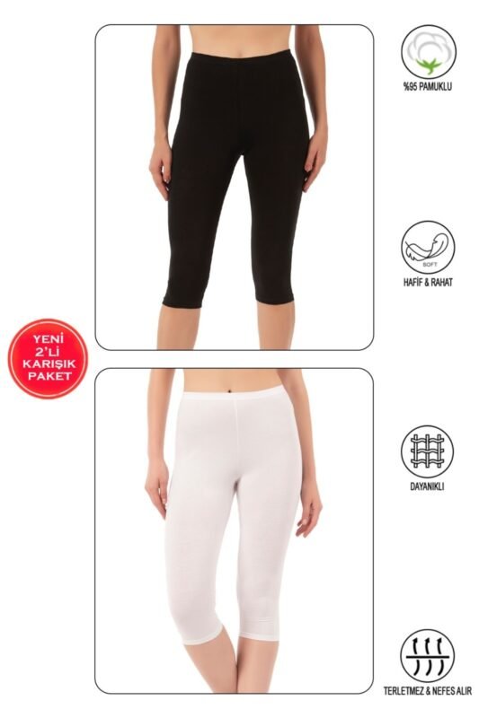 Lirona Pamuk Diz Altı Pantolon Ve Etek İçi Astar Şort Tayt – 2’li Paket Siyah Beyaz